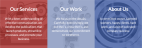 On the Our Work page, we added a showcase with links to infographics that we created in Adobe Photoshop, using copyright-free images found on sites where creatives share their work. Content that was primarily words morphed into content that combines words and pictures. Infographics are now an offering on Our Deliverables.